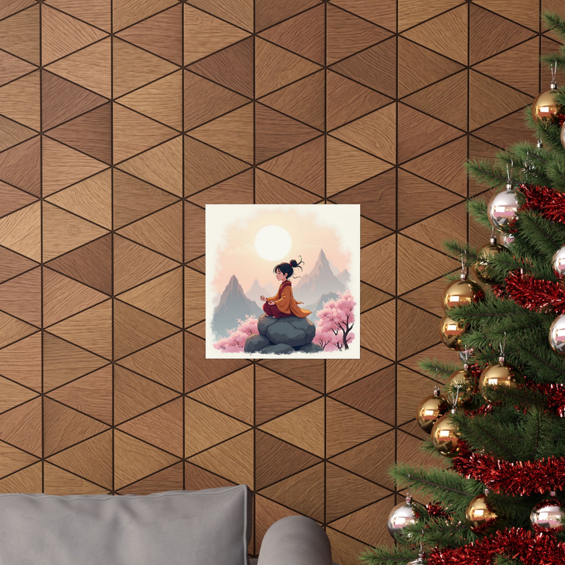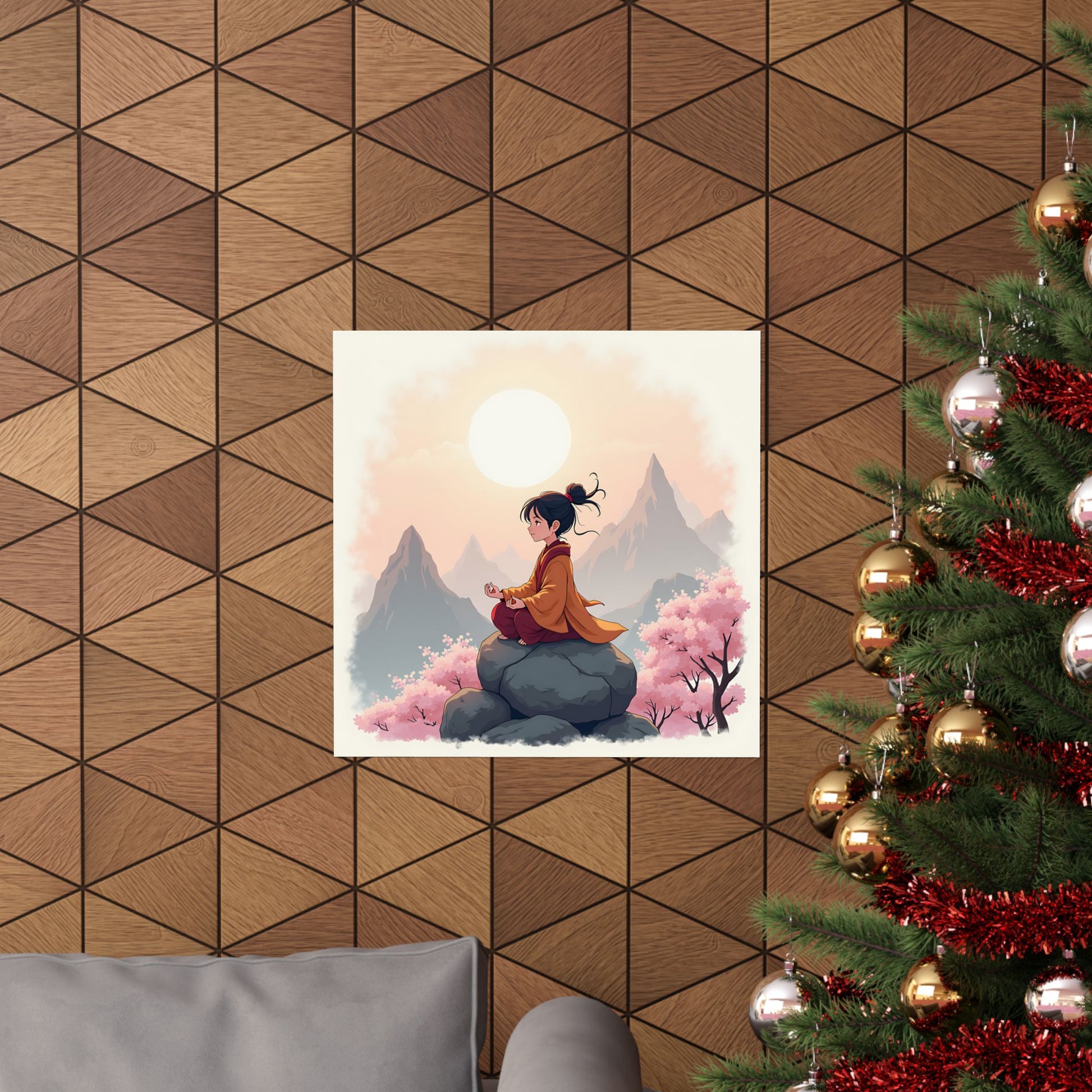 Immerse yourself in tranquility with this serene anime-themed poster, capturing a young protagonist in a meditative amidst a mountainous landscape and cherry blossoms. Perfect for anime enthusiasts looking to bring a touch of serenity to their living space. Ideal for decorating bedrooms, offices, and study spaces. Great for anime-themed home decor, meditation rooms, and as a gift for fans of Japanese culture and art . Suitable for occasions like birthdays, holidays, and anime conventions.
