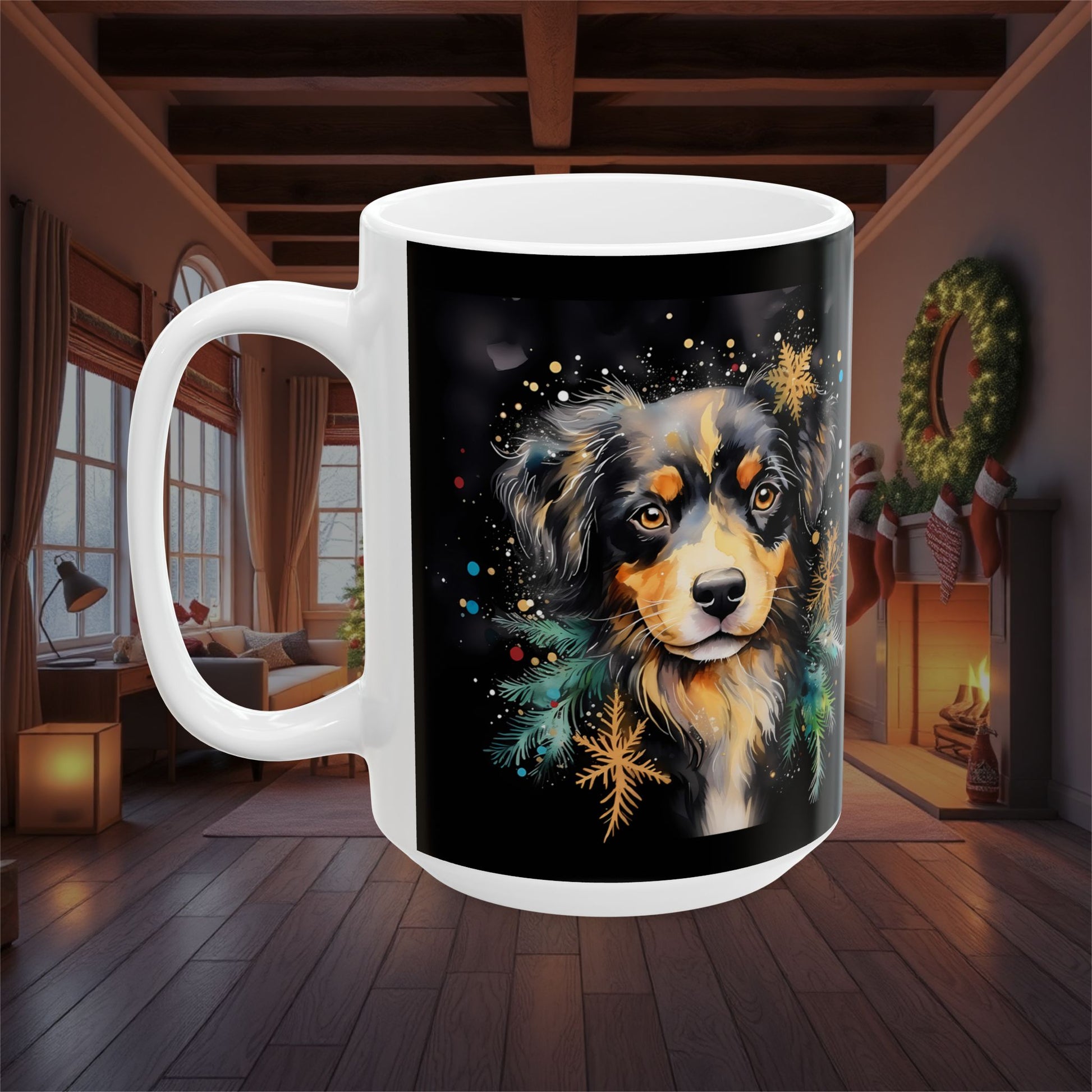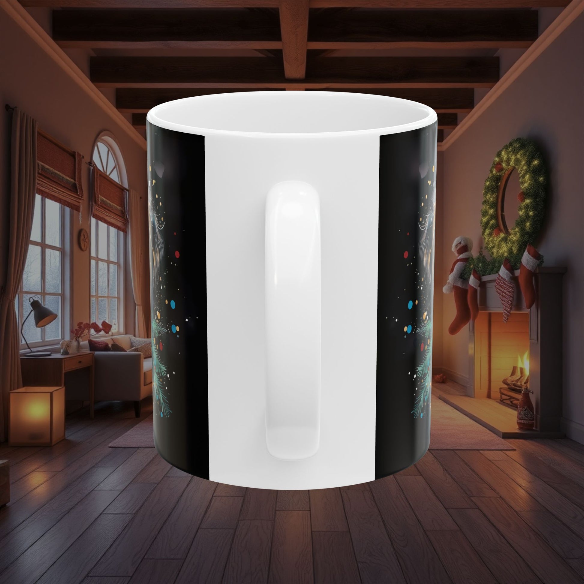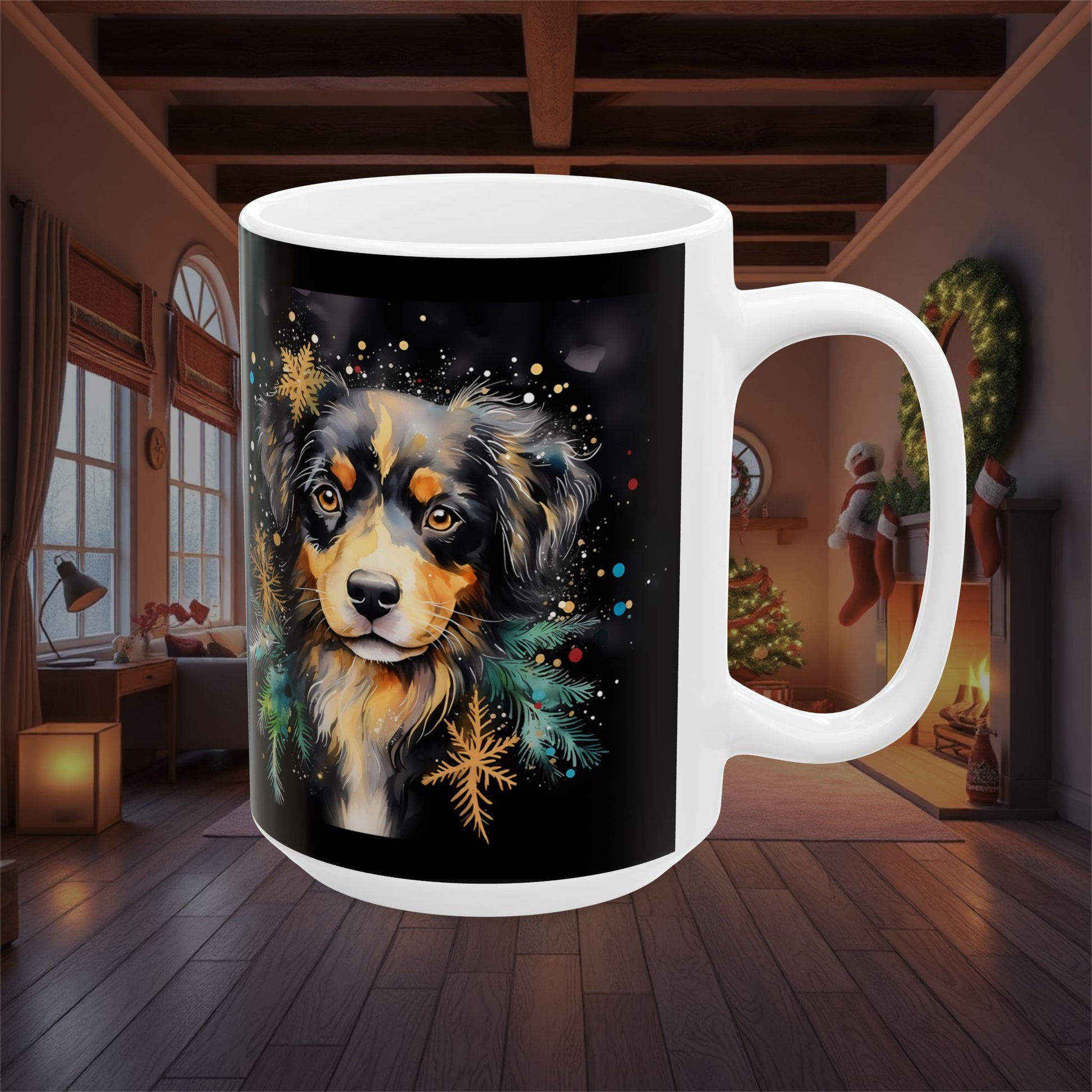 Christmas Holiday Dog Ceramic Mug, (11oz, 15oz), Festive Christmas Coffee Cup, Holiday Decor Gift, Pet Lover Stocking Stuffer, Seasonal