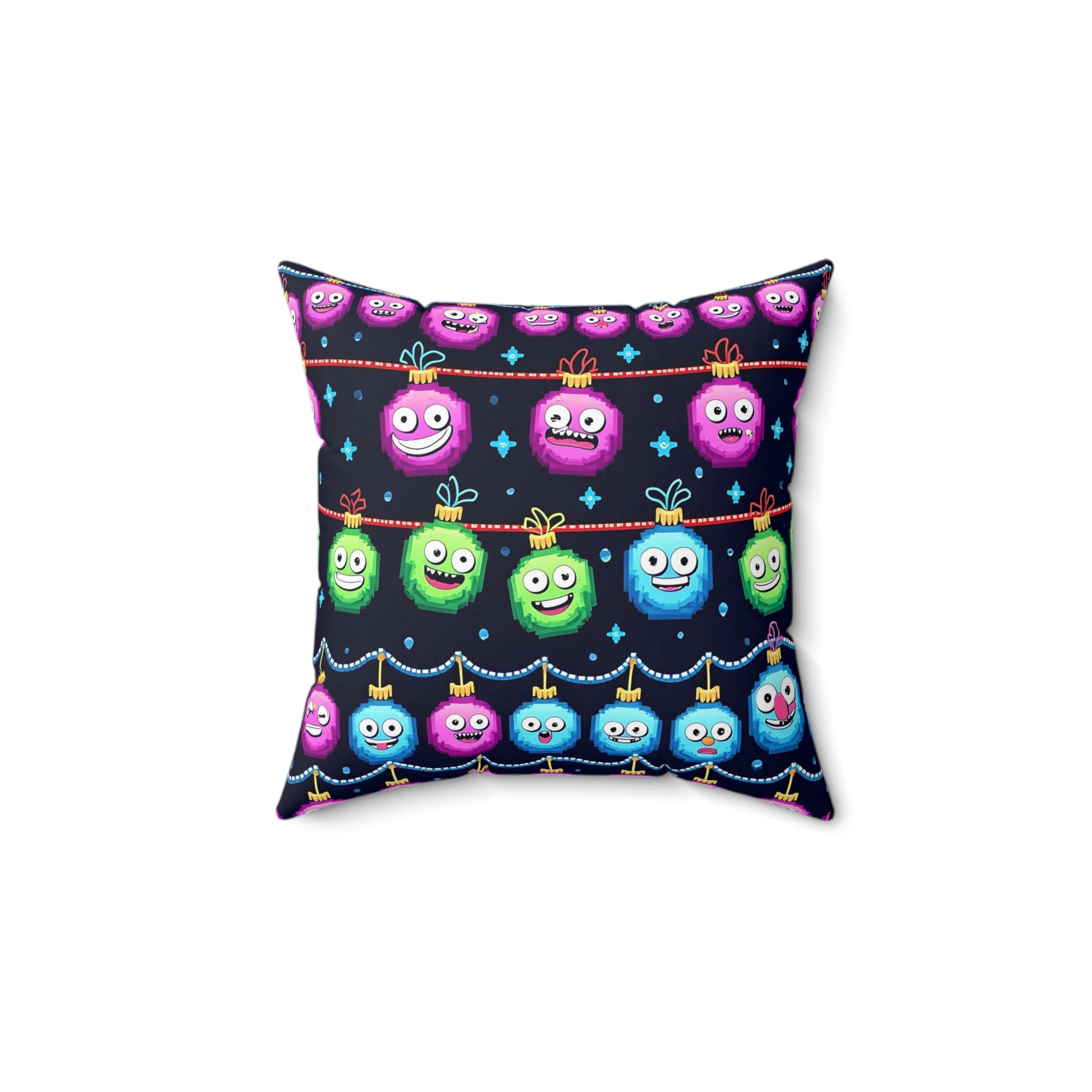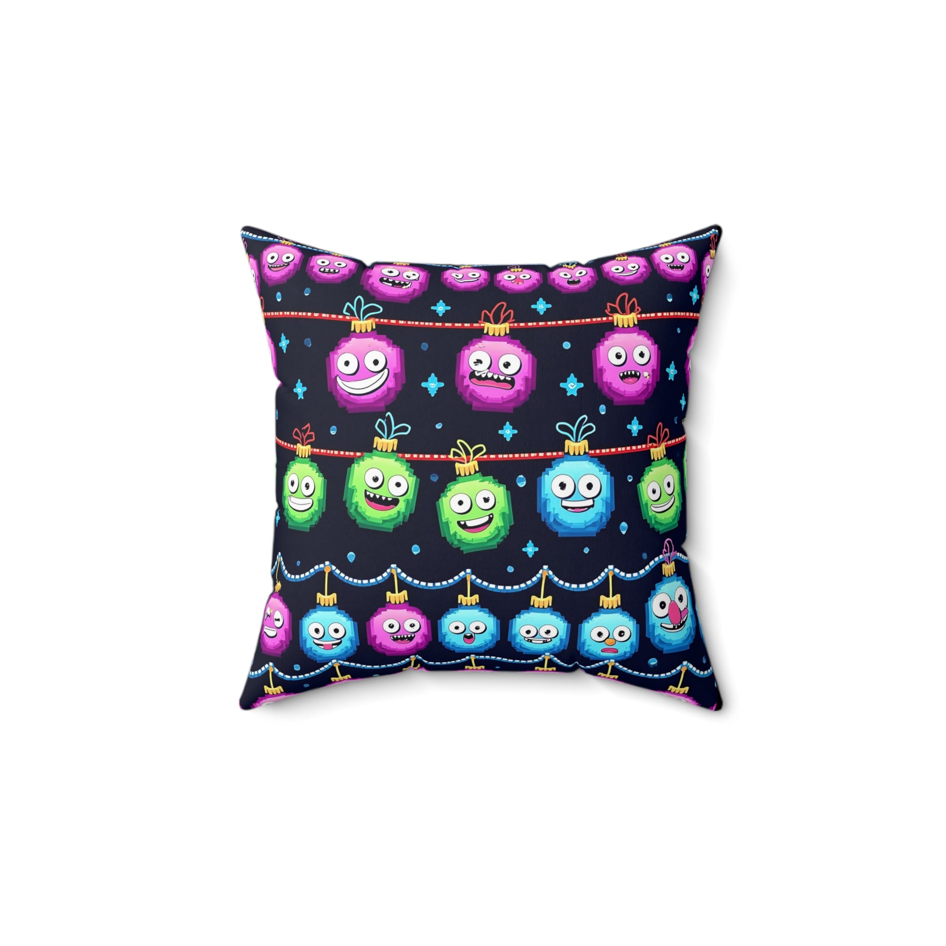 Emoji Christmas Pillow, Holiday Decor, Festive Cushion, Xmas Emoji Pillow, Square Throw Pillow