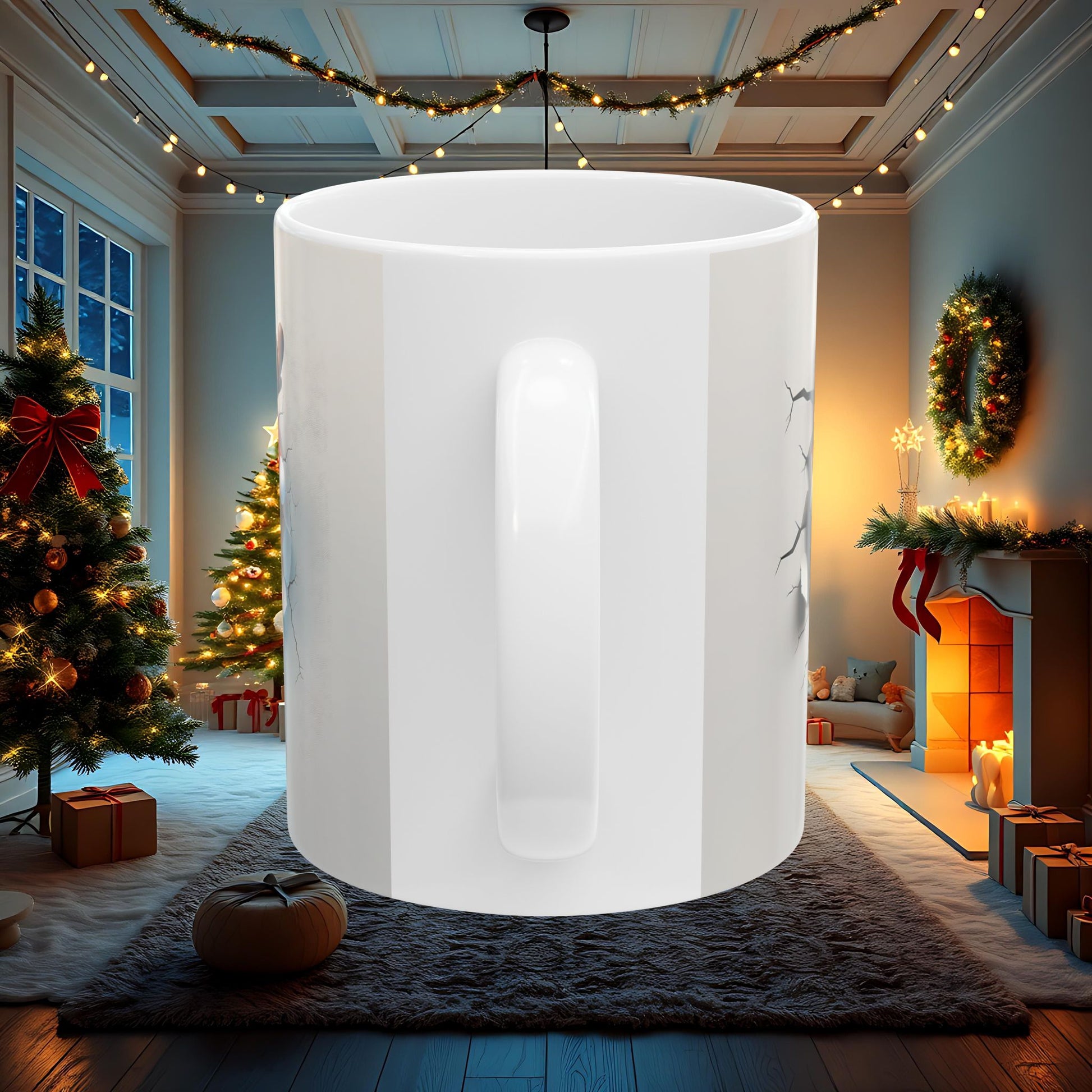 Reindeer Wall Break Ceramic Mug, Christmas Coffee Cup, Holiday Tea Mug, Festive Hot Cocoa Cup, 3D Double Sided Mug