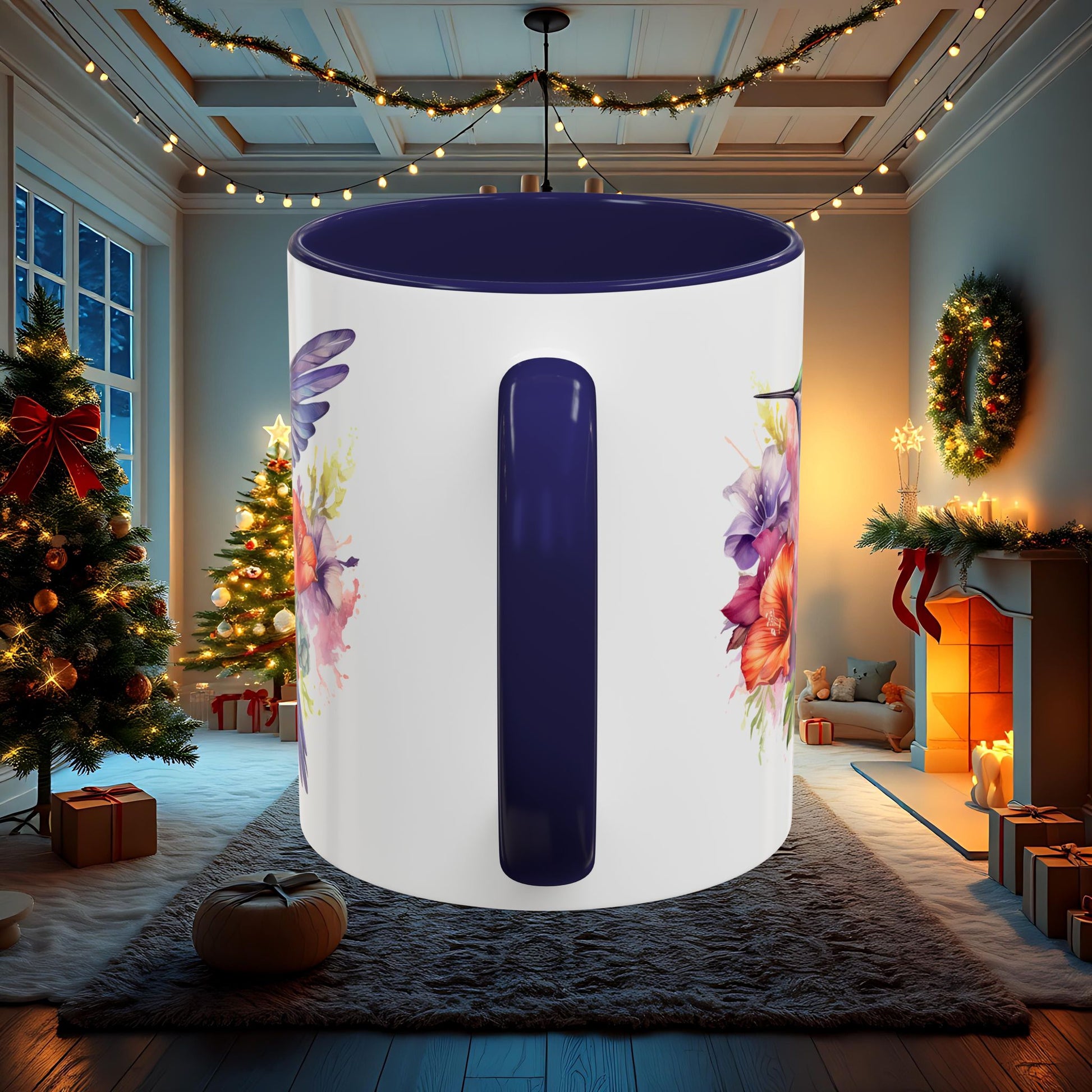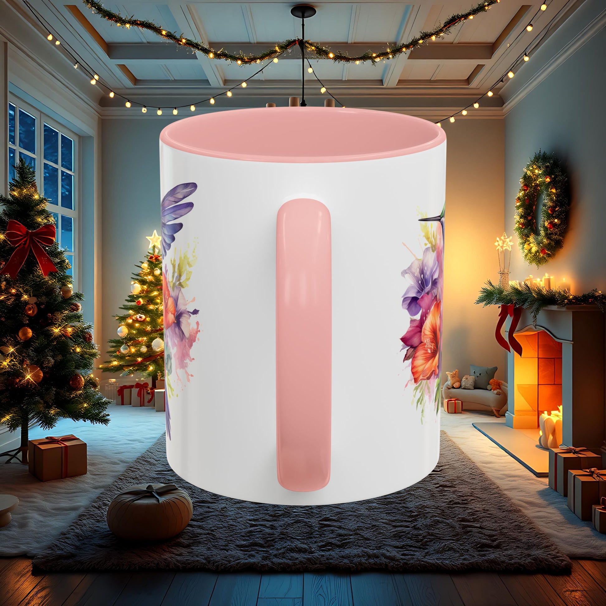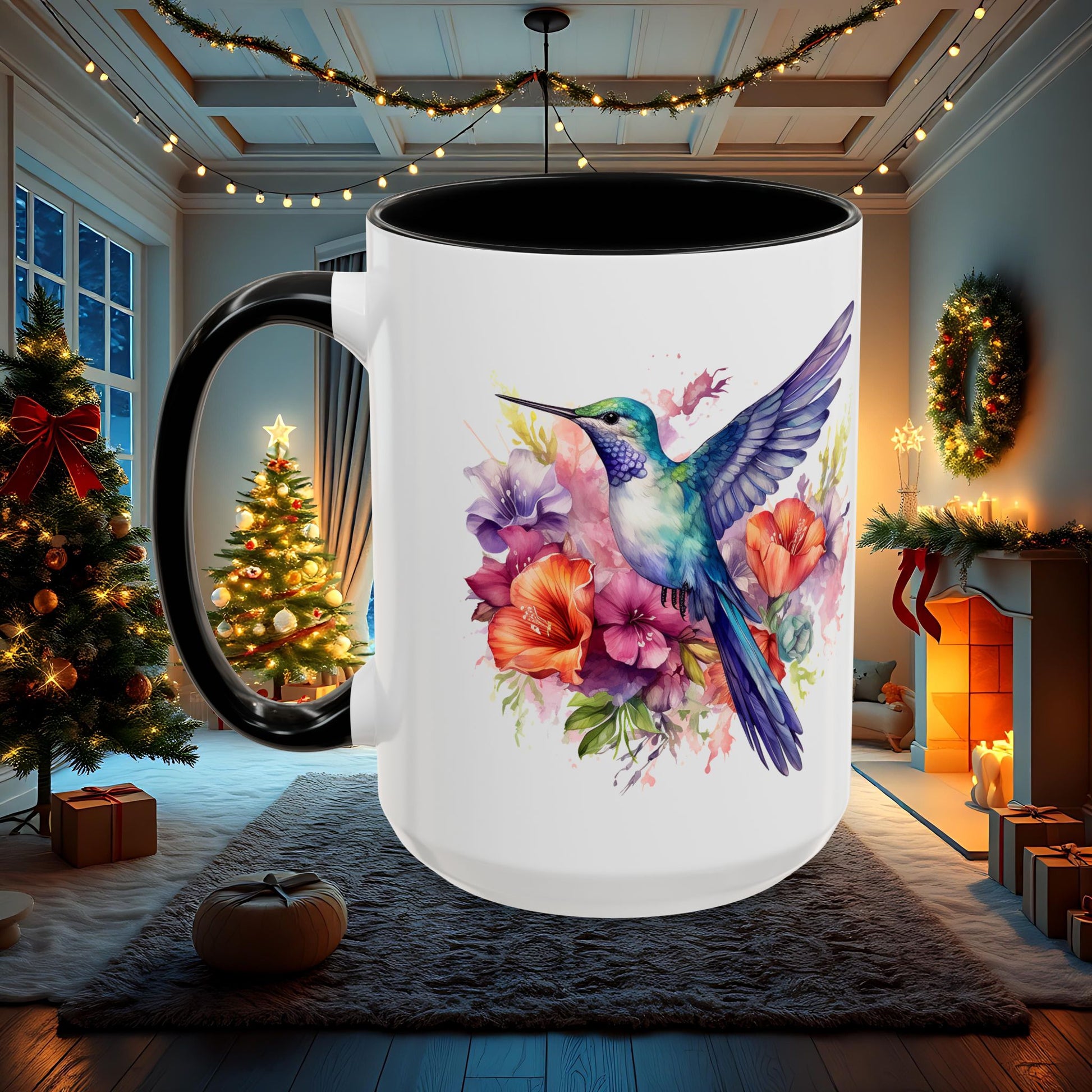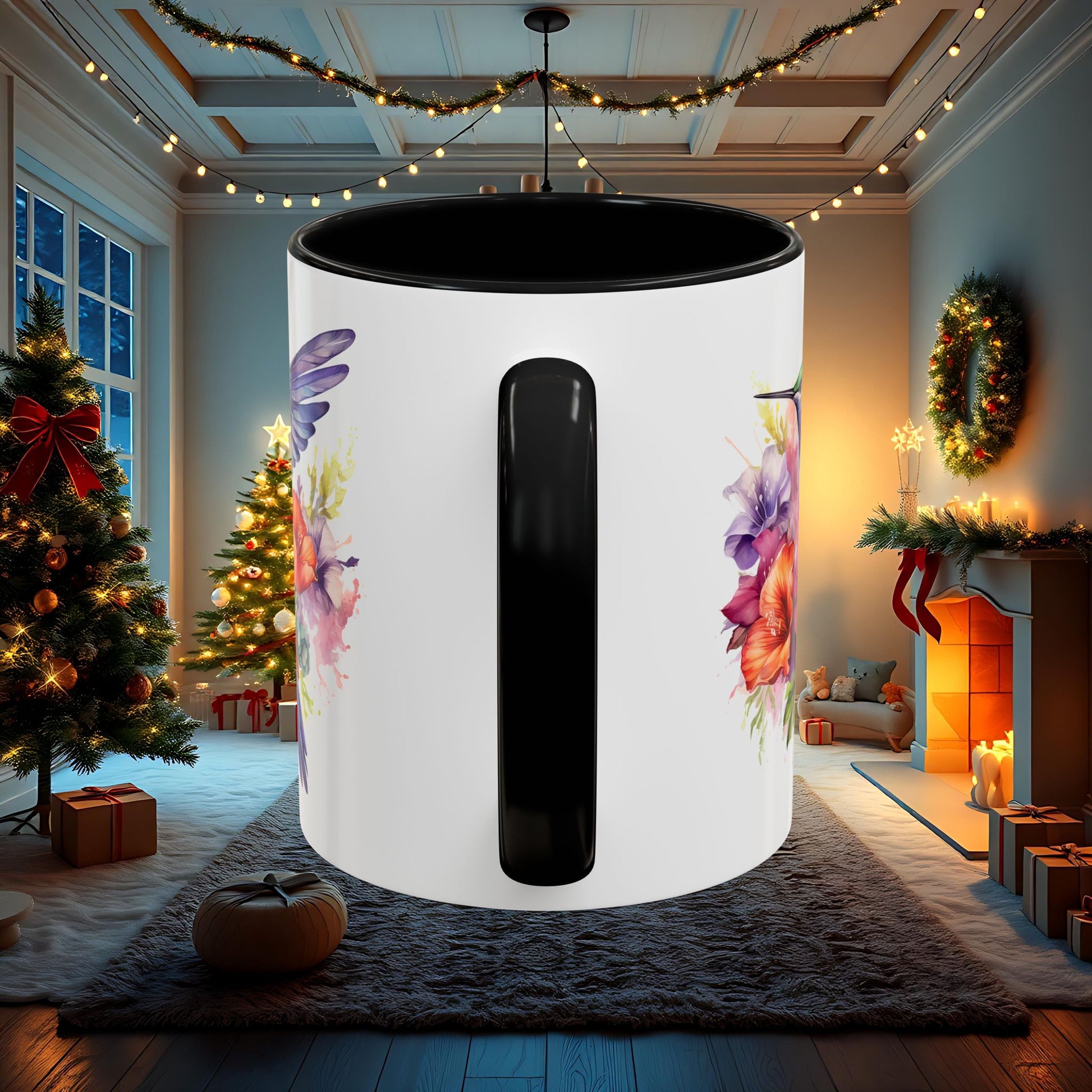 Watercolor Humming Bird Mug, Floral Bird Coffee Cup, Nature Lover Gift, Birdwatcher Mug, Unique Hand Painted Mug, 11oz 15oz Mug